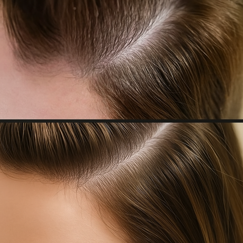 „Endlich hab ich etwas gefunden, dass wirklich wirkt. Mein Oberkopf füllt sich wieder, und ich sehe meine Kopfhaut nicht mehr.“